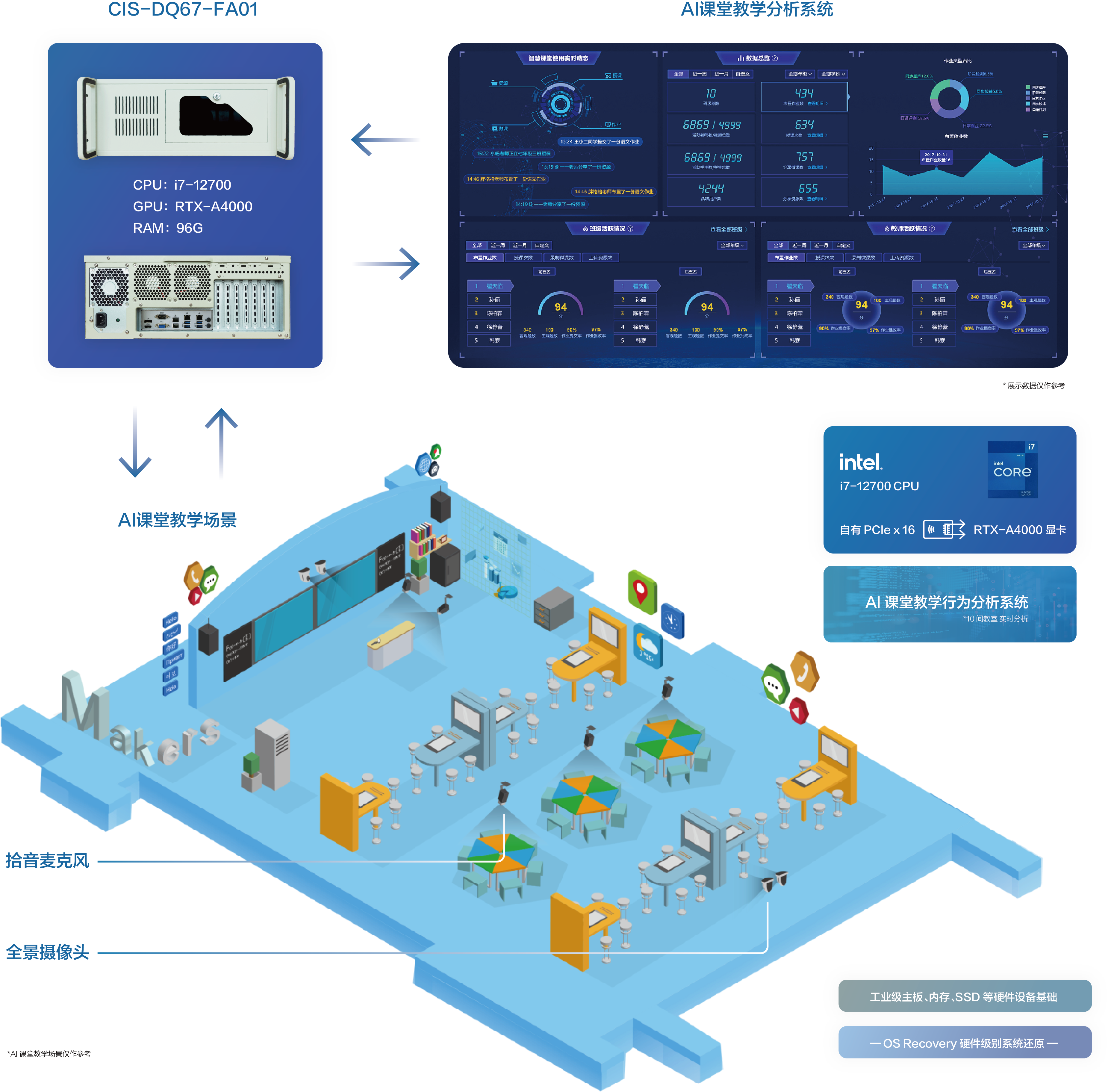 案例用户为某AI课堂教学行为分析系统解决方案服务商,为保障其系统精准、稳定运行,对AI课堂观察终端解决方案中的核心计算单元-工业计算机品质与性能提出较高要求: